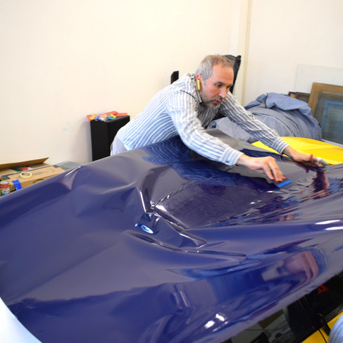 Car wrapping process to create the Olio Fiat adhesive livery.